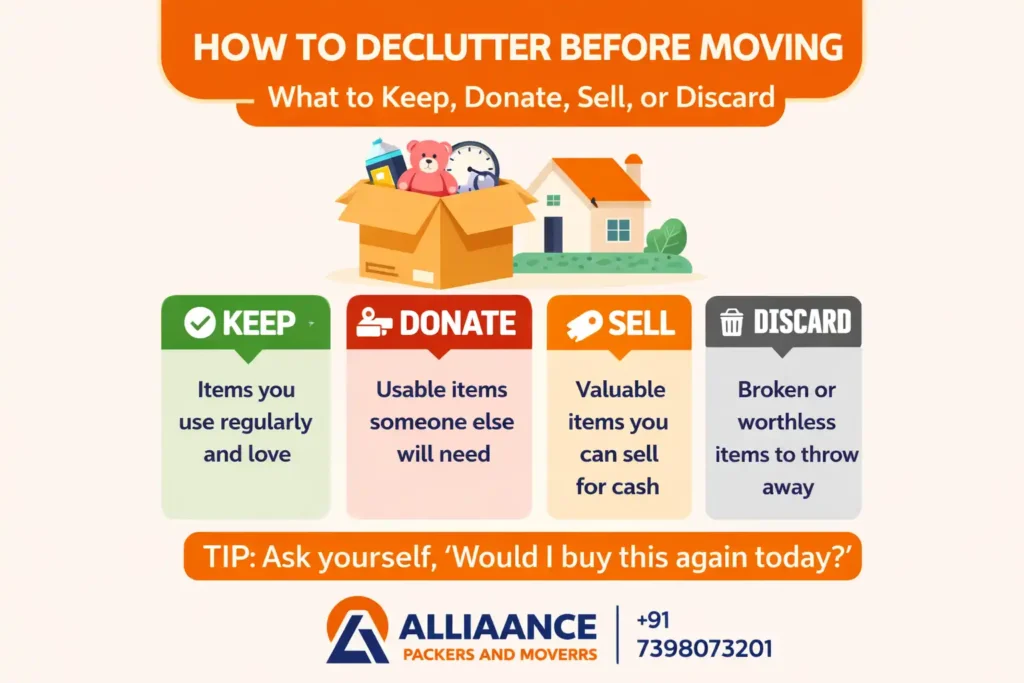 Stop paying to move things you don’t need. Declutter the right way before your move and reduce packing time, truck size, and overall charges. Let Alliaance Packers and Movers handle your relocation with expert planning, safe packing, and reliable transport.